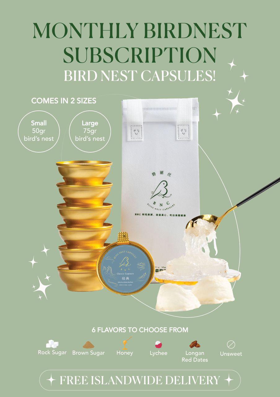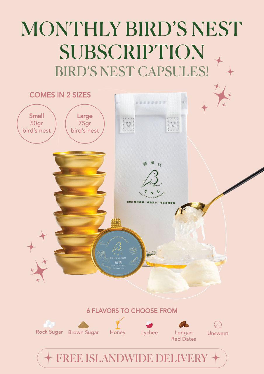 Discover the best place to buy bird nest in Singapore with Bliss Bird’s Nest 10 Weeks Plan package! Enjoy the convenience of weekly deliveries, choosing from 4 or 7 capsules, and experience the luxury of premium bird’s nest right at your doorstep. Subscribe now for a hassle-free, long-term wellness journey.